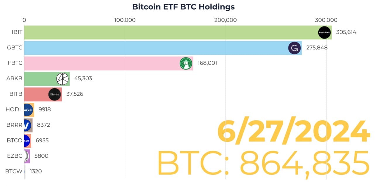 In fact, collectively the ETFs already hold 864,835 Bitcoin, which is 4.12% of the maximum supply.